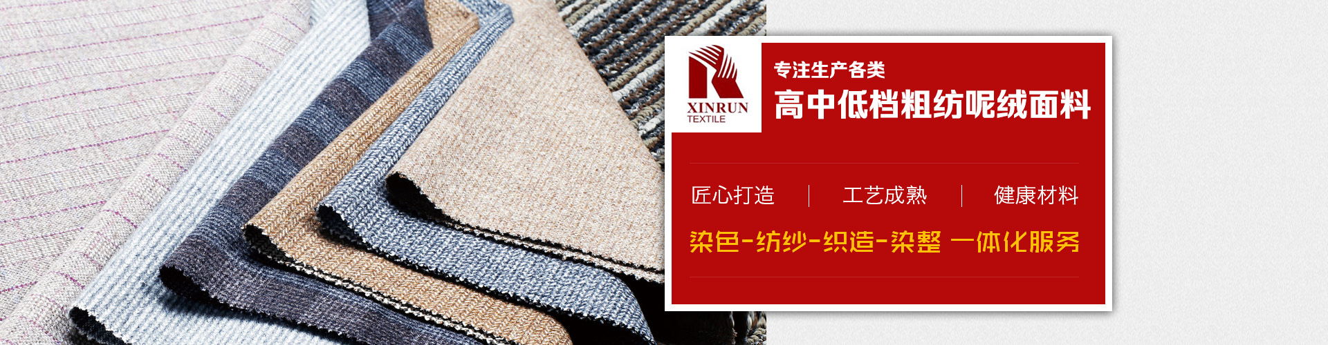上海鑫潤(rùn)紡織品有限公司是一家從事開發(fā),生產(chǎn),銷售為一體的毛紡面料公司,公司生產(chǎn)各類高中低檔粗紡呢絨面料,并下轄控股毛紡廠3家,擁有先進(jìn)的生產(chǎn)設(shè)備和的管理體系,不僅在國(guó)內(nèi)市場(chǎng)享有良好地信譽(yù),而且產(chǎn)品遠(yuǎn)銷美國(guó),歐洲,俄羅斯,韓國(guó),日本等不同國(guó)家,贏得了國(guó)外市場(chǎng)的一致好評(píng)。憑借優(yōu)良的品質(zhì),良好的信譽(yù),我公司還是ZARA,H&M,C&A,JACK&JONES,MANGO,TARGET,PROMODE,ORSAY等國(guó)外知名品牌的供應(yīng)商。